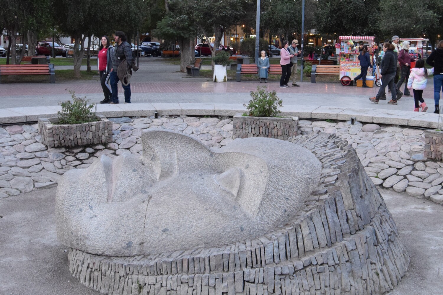 Destaca por sus añosos árboles de protectoras sombras; sus anchos pasillos y cómodas bancas; su gran escenario y sus bellas esculturas. De estas últimas la principal es un gran rostro de Gabriela mirando hacia el cielo, esculpido en piedra, que ocupa el centro de la plaza desde 1971.
